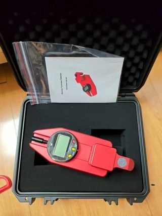 A high-precision digital gauge designed for measuring the dry film thickness of road markings. Features a durable electroplated aluminum body and a high-resolution digital display for accurate quality control.